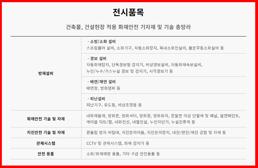 – 건축물ㆍ건설현장 적용 화재안전 기자재 및 기술 총망라