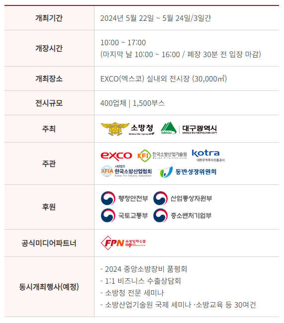 2024년 국제소방안전박람회가 5월 22일 ~ 24일 대구 EXCO에서 진행됩니다