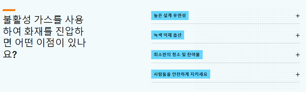 불활성 가스는 산소 수준을 화재에는 지속 불가능하지만 사람과 환경에는 안전한 농도로 낮추는 데 사용됩니다.