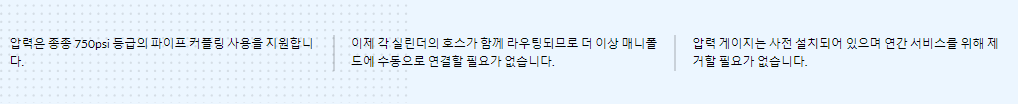 탁월한 설계 품질로 인해 용기에서 노즐까지 커플링을 사용하는 소직경, 저압 등급 배관의 긴 파이프 연결이 가능합니다.