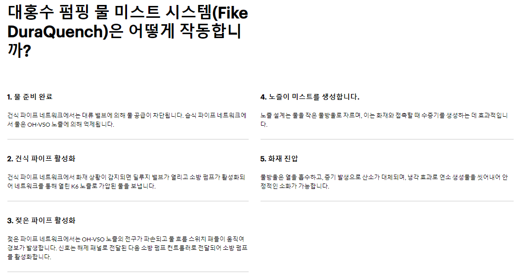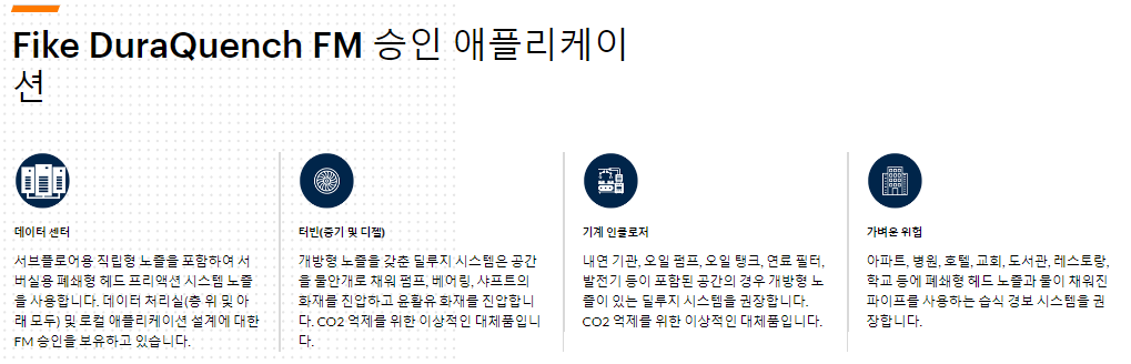 전자제품 및 기타 고부가가치 제품을 안전하게 보호하기 위해 초미세 물방울을 생성하는 워터 미스트 시스템과 보다 넓은 환경에 이상적인 물대포가 포함됩니다.